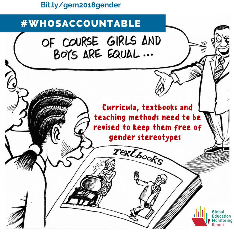 The Gender Review states that governments are the primary duty bearers for the right to gender equality in education and the first line of defence for ensuring inclusive and equitable quality education and promoting lifelong learning opportunities for all. In addition, it highlights the importance of teacher training and codes of conduct in overcoming gender stereotypes and tackling gender-based violence and recommends comprehensive sexuality education programmes to raise awareness of gender power relations.