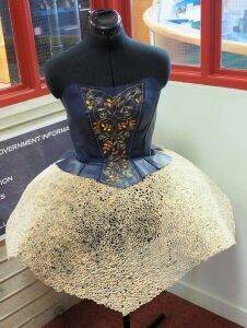 One to look out for is the exquisite dress (pictured below) originally created by Dunedin Public Libraries’ Jill Bowie for the City Library’s recent exhibition Muse, a special part of the Creative Cities Southern Hui. The life-sized dress is fashioned from recycled pages and bookbinding offcuts and has literally emerged from the chapters of a novel!